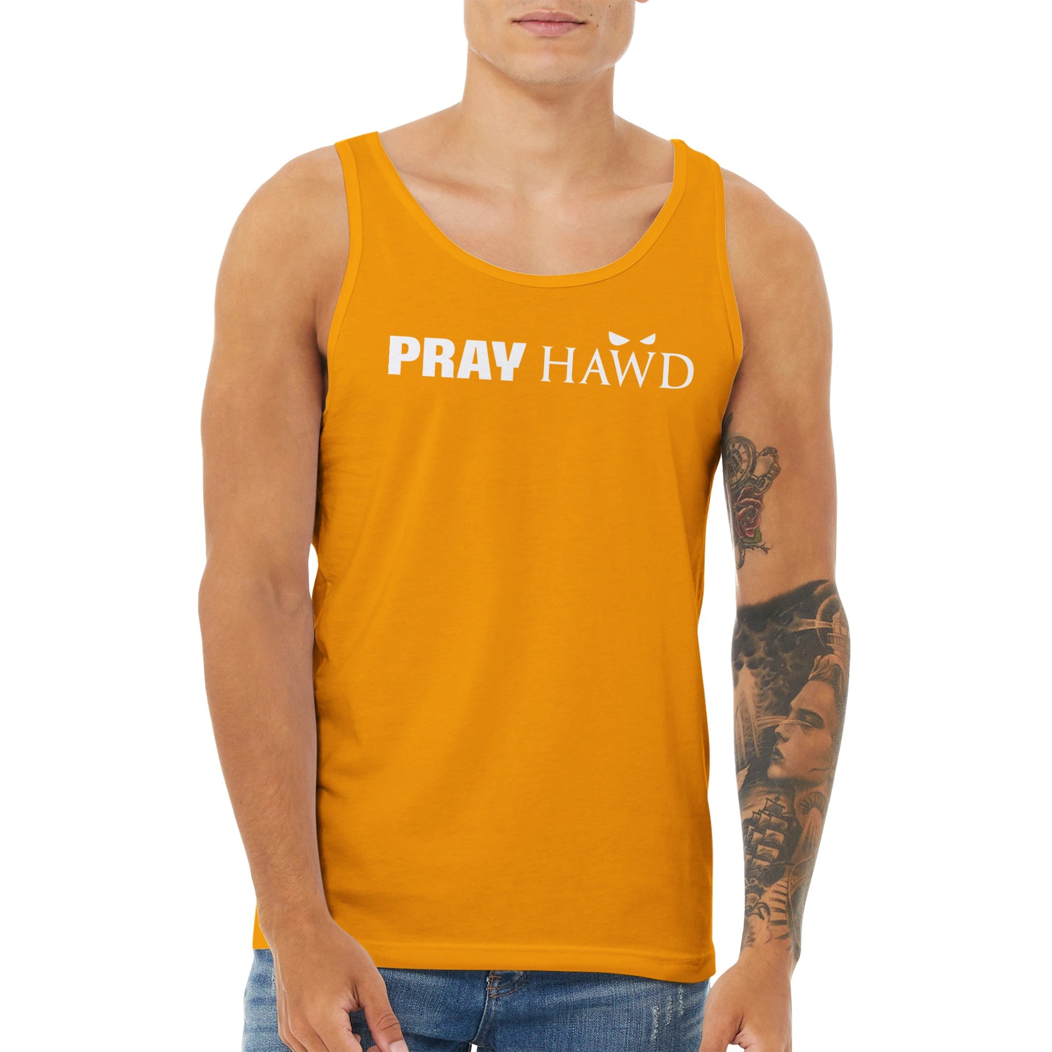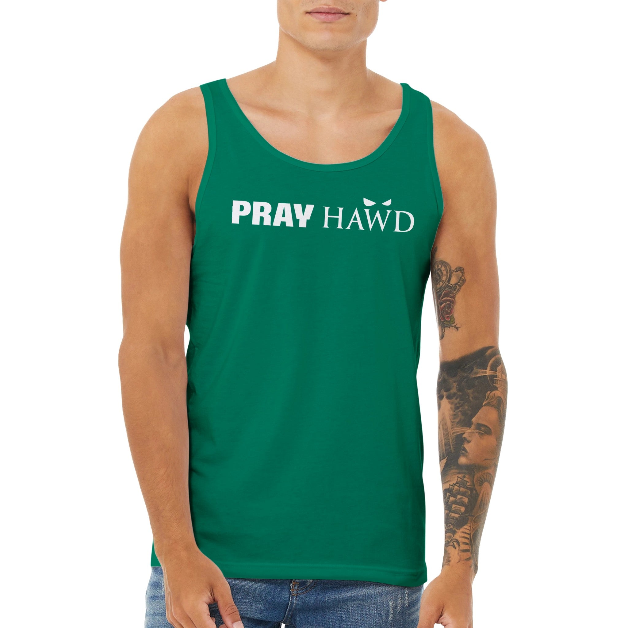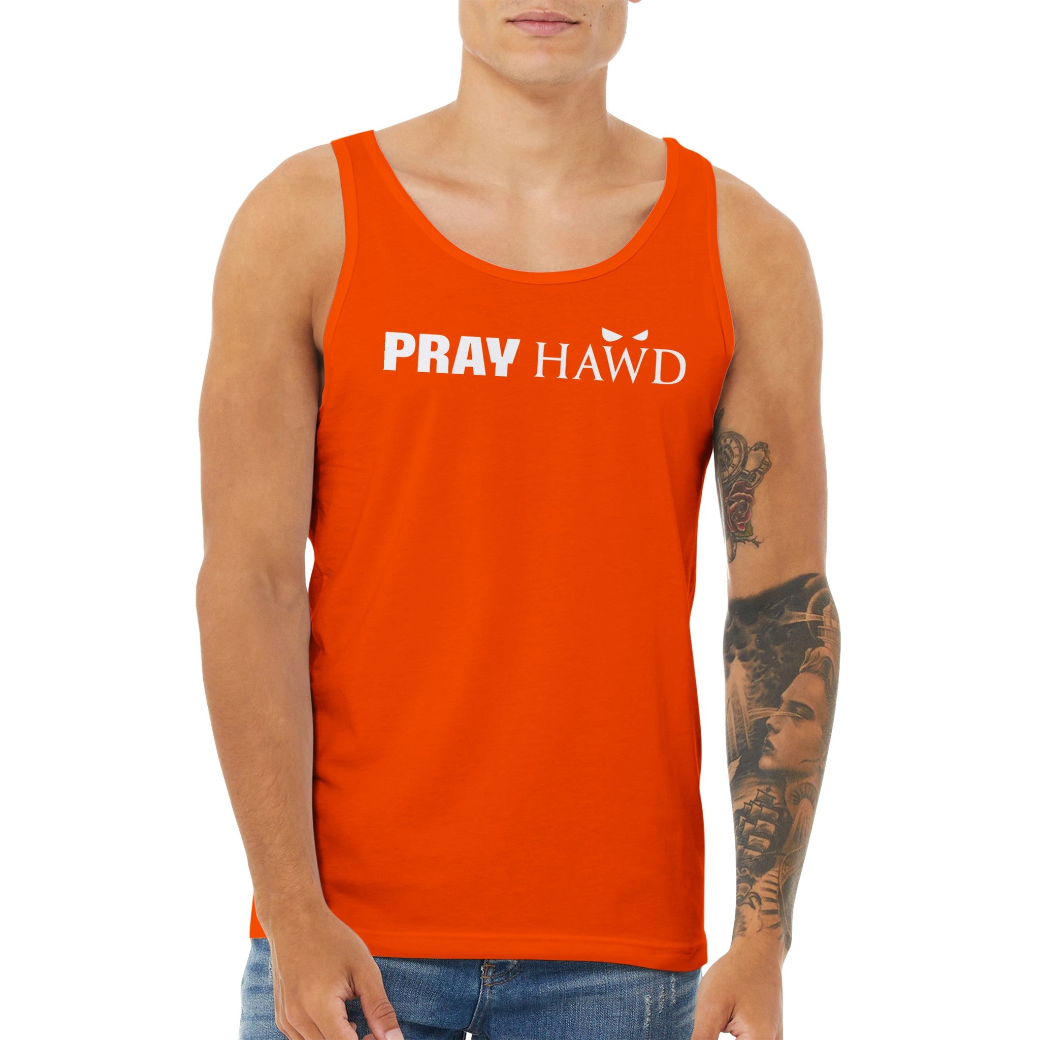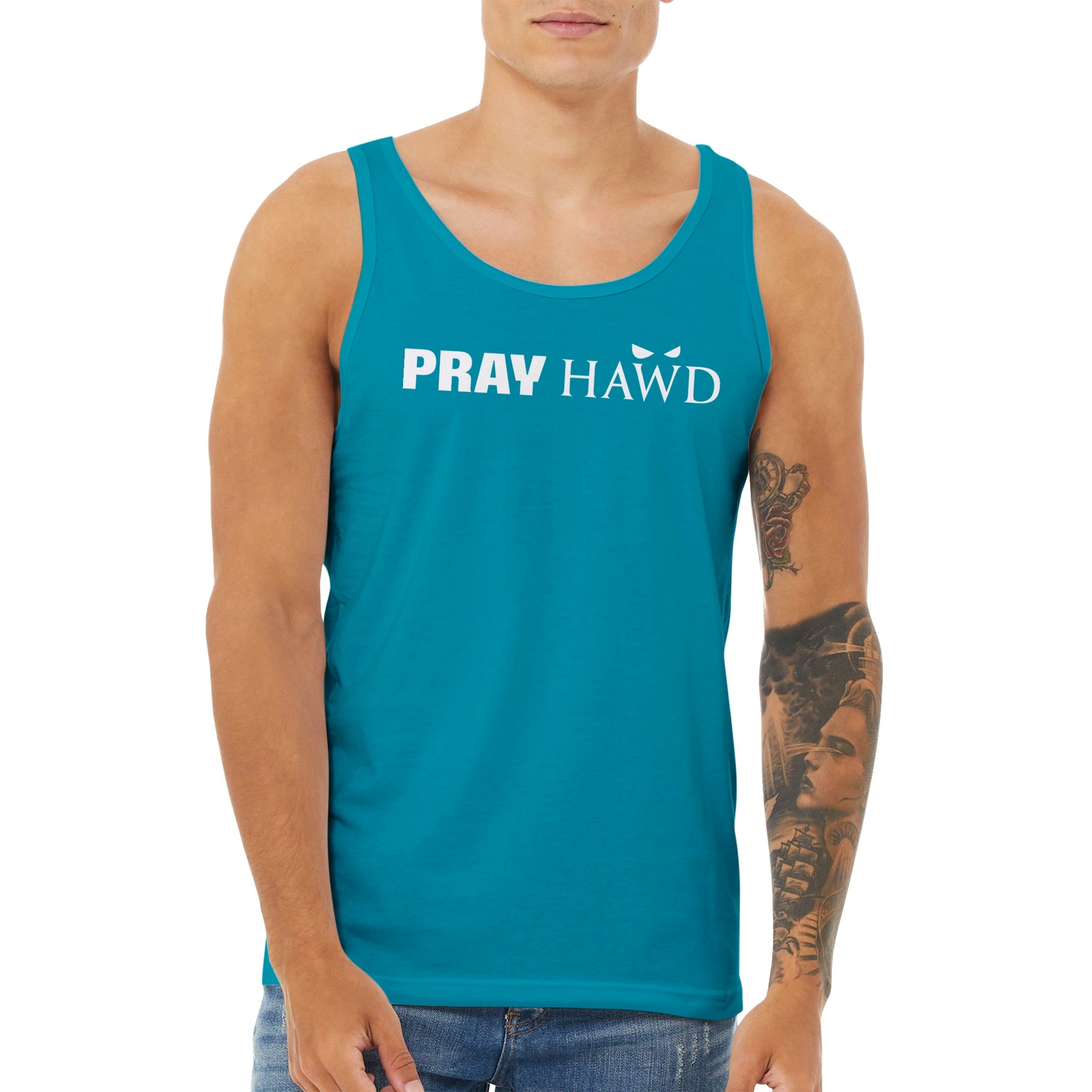 PRAY HAWD Men's Tank Top has a modern fit, featuring a rounded neck and designed with superior combed and ring-spun cotton that acts as a blank canvas for printing.